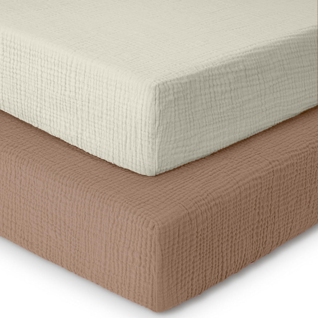 Muslin Crib Sheets Unisex Caramel/Ecru (Mini)